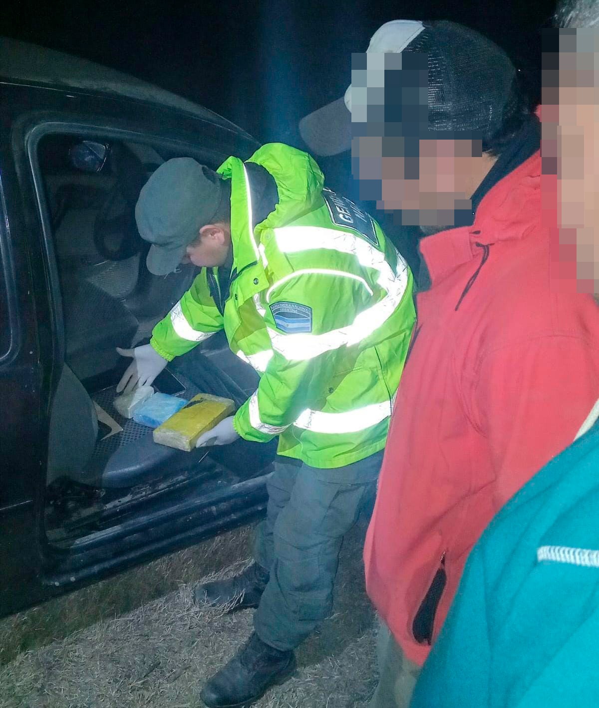 Durante la inspección, el personal de seguridad detectó una mochila en el baúl del automóvil que contenía 1 kilo 684 gramos de cocaína. La droga estaba distribuida en un paquete rectangular envuelto en cinta de color amarillo, otro «ladrillo» de color celeste y una bolsa transparente con una sustancia blanca.