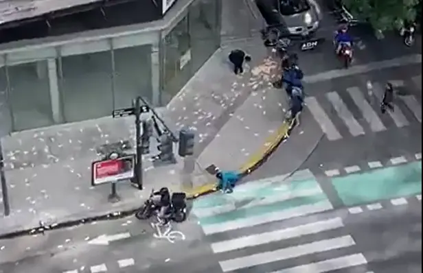 Una vecina registró toda la escena desde un edificio. En las imágenes, se puede ver cómo los billetes revoloteaban y quedaban esparcidos a lo largo de media cuadra. En medio de la crisis económica que atraviesa el país, varios vecinos y transeúntes se abalanzaron para tratar de hacerse con un par de ellos.