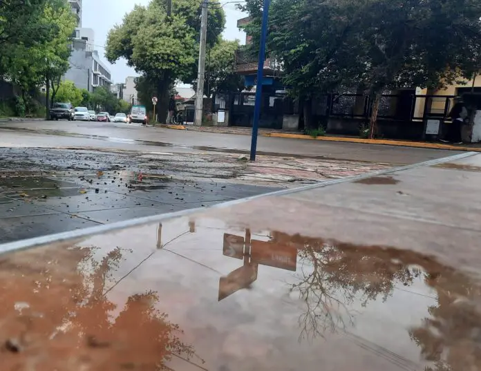 Primero comenzó con una intensa actividad eléctrica y, posteriormente, se produjeron las precipitaciones y un intenso viento que provocó algunos inconvenientes en determinados sectores de la ciudad.