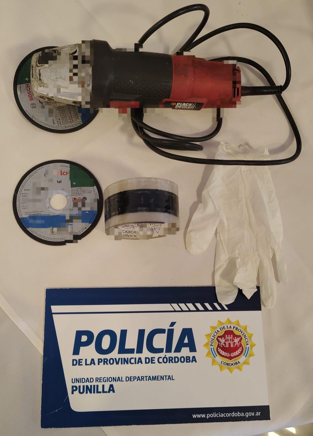 Entre los elementos secuestrados se encontraron amoladoras y herramientas de corte.