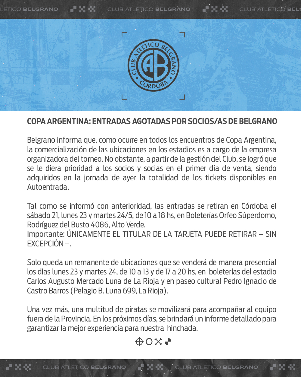 Las entradas se habían puesto a la venta durante el ultimo viernes y, en tan solo 24 horas, los socios y socias agotaron todas las entradas que había para ver a Belgrano frente a Platense, por Copa Argentina.