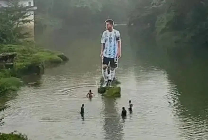 A menos de un mes para que comience el mundial, la locura y el fanatismo por el astro rosarino Lionel Messi atraviesa las fronteras Argentinas. Tal es así que en un pequeño pueblo de la India, sus habitantes instalaron una enorme gigantografía del jugador en el medio de un río.
