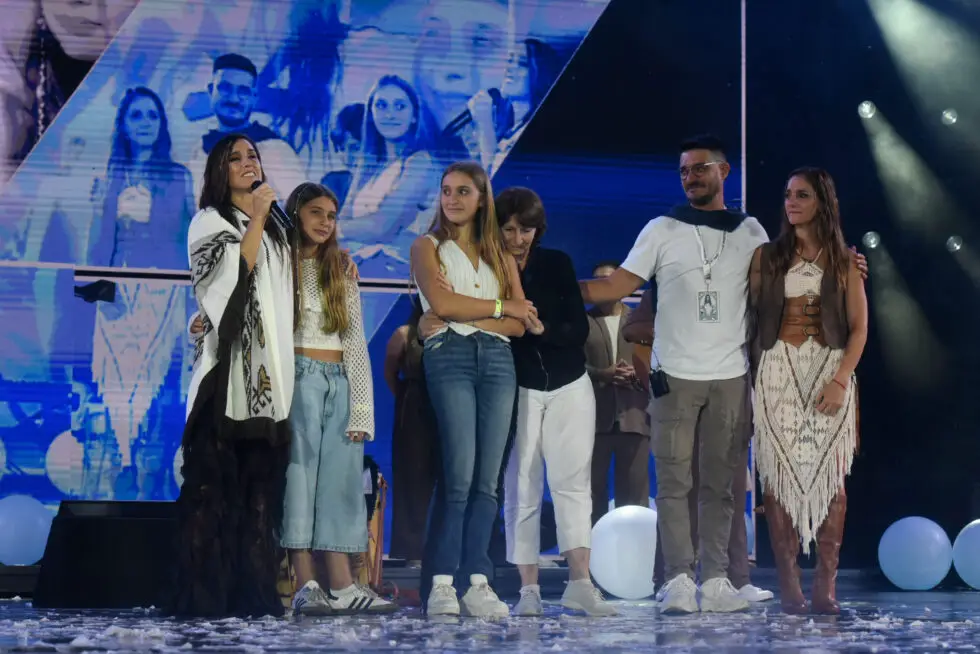 La imagen final fue la postal perfecta de una gran fiesta familiar: Soledad junto a su hermana, sus hijas, su madre y su esposo Jeremías, bajo la lluvia y con la plaza rendida. Una escena para enmarcar y recordar para siempre.