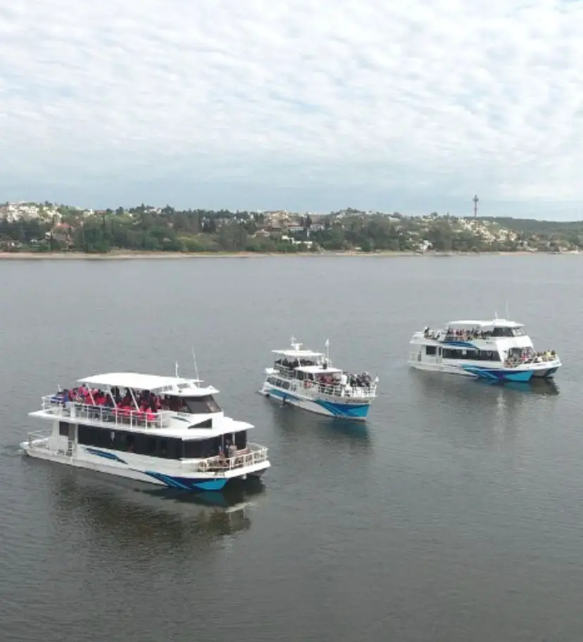 “Allí, el Castillo del Doctor Zárate a vuestra izquierda… más atrás… de tono rojizo… otro Castillo… el de los Garlot. Ahora, si miran a estribor, sin moverse de sus butacas, verán la moderna Sala de Convenciones y el Polideportivo. Y en breve, debajo nuestro, bajo las aguas, aunque no la veamos, está la antigua Estancia Santa Leocadia… sitio donde El General Paz y el Brigadier Bustos se enfrentaron…”