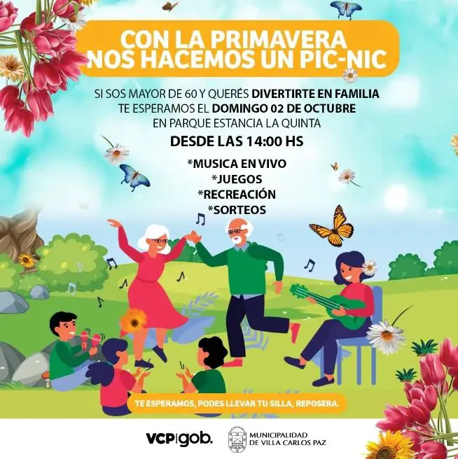 Luego de ser postergado por el mal clima de días atrás, los adultos mayores de Carlos Paz podrán disfrutar de los festejos por el día de la primavera en el Parque Estancia La Quinta.