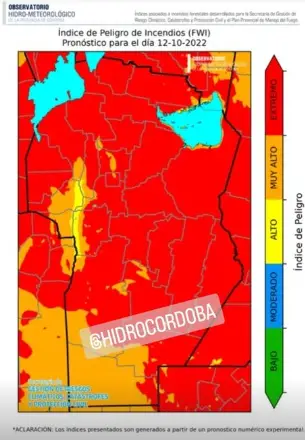 Durante gran parte del día, la mayor parte de Córdoba registró un peligro extremo de incendios, según informaron desde el observatorio hidro meteorológico.