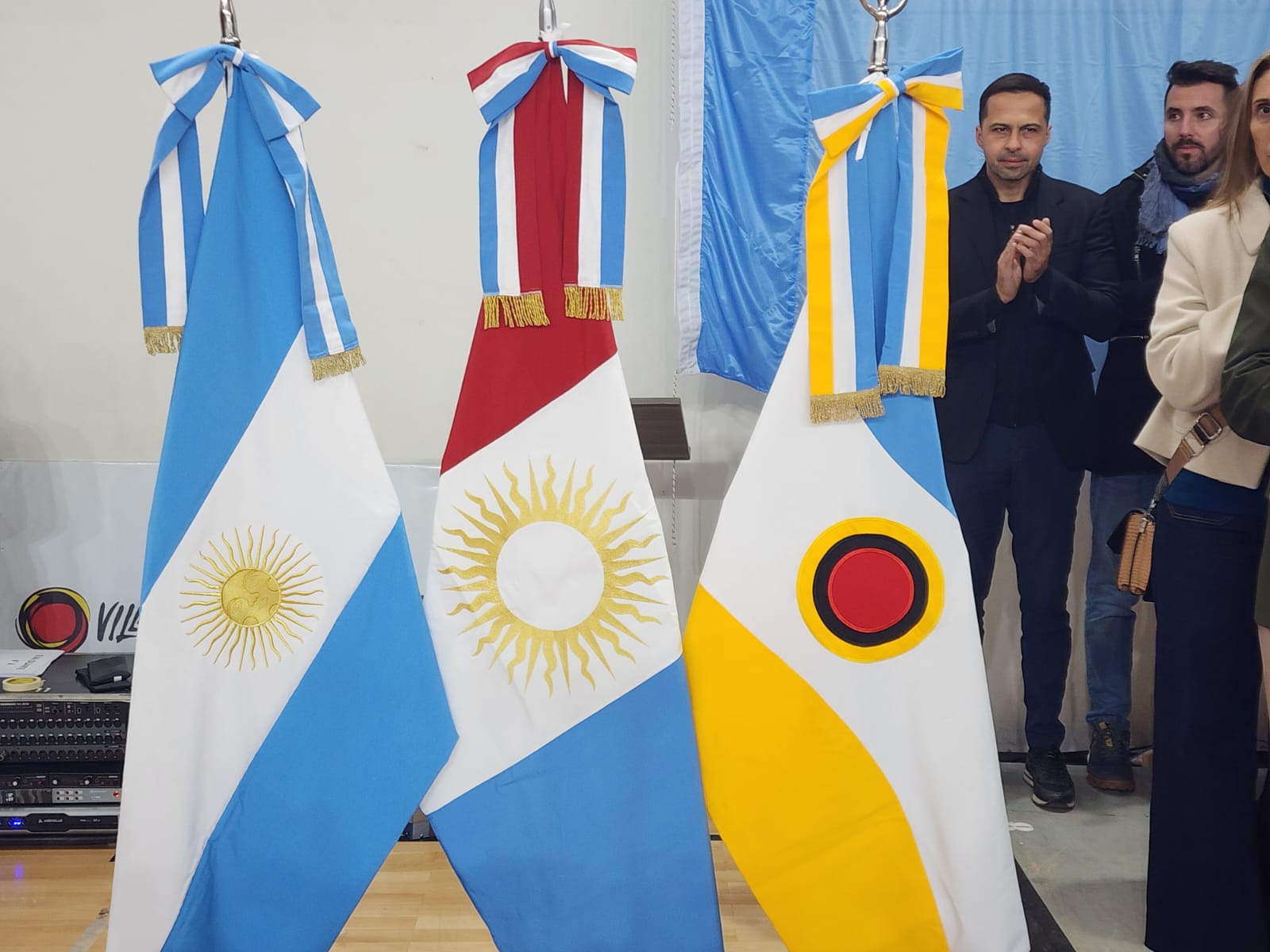 Una característica especial del acto fue que debutó oficialmente el pabellón de la bandera de Carlos Paz.