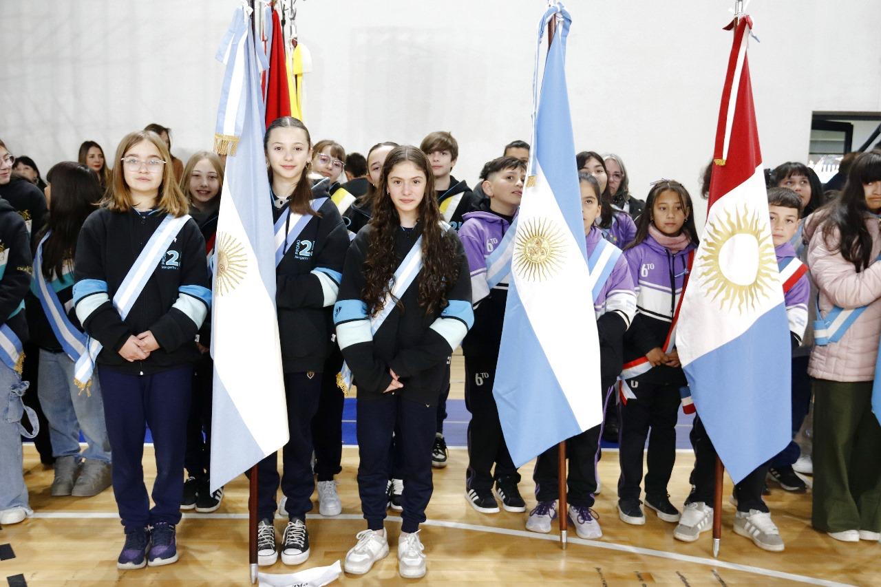 Los alumnos de cuarto grado de todas las instituciones educativas de Carlos Paz participaron este viernes del acto de promesa de la Bandera que se concretó en el Estadio Arenas.