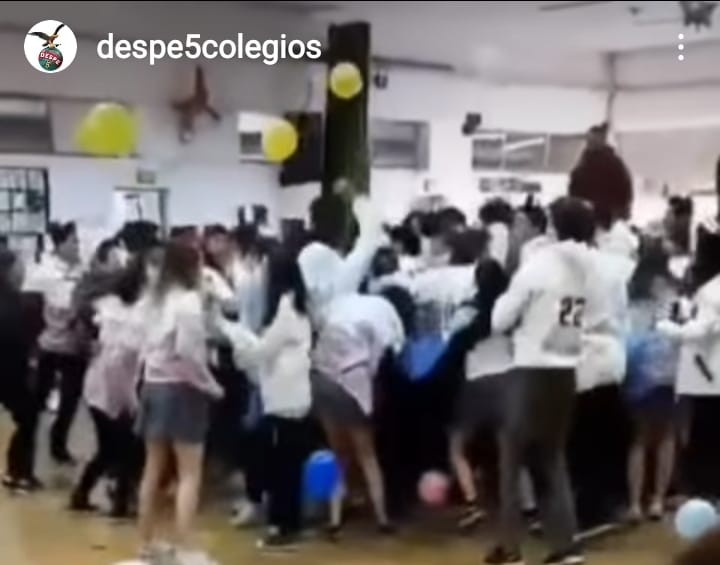 En otro video que aparece en Instagram, un chico se tira de cabeza en un pogo en el que participa un grupo de compañeros de curso.
