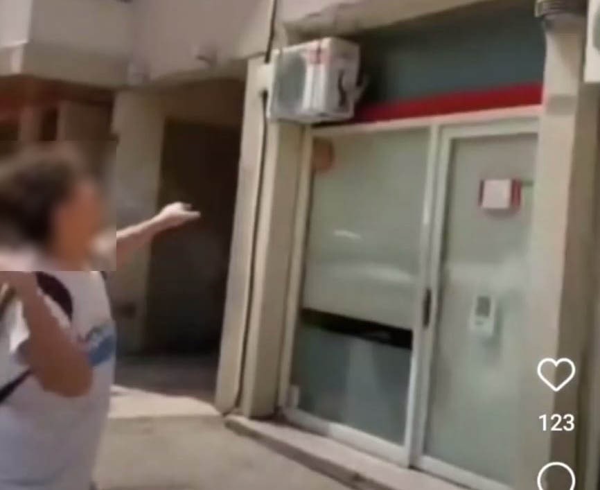 Un joven aparece en un video en las redes sociales mientras arroja un petardo desde la vereda a la ventana de un departamento en el primer piso de un edificio, aparentemente en Carlos Paz.
