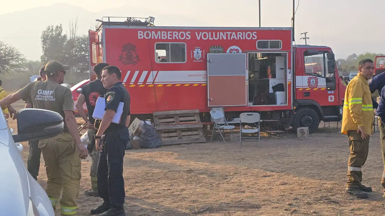 Bomberos se preparan para salir a combatir el fuego en Capilla del Monte.