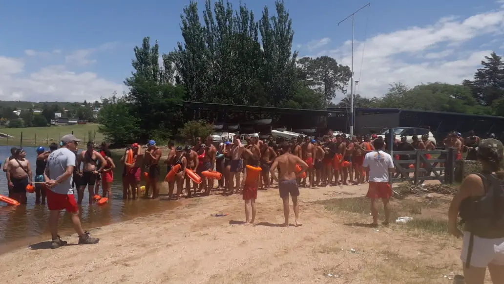 Este mediodía se concretó el ya tradicional cruce a nado del lago San Roque por parte de los Guardavidas como parte final del curso previo a la temporada de verano.
