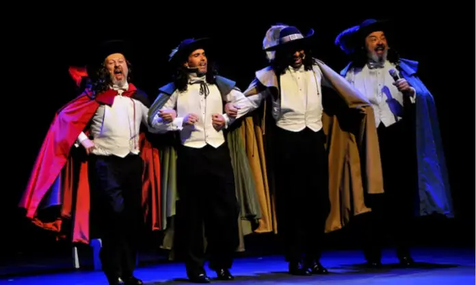 Es una obra que tiene como eje el error actoral: cuatro actores tratan de empezar una función sobre la famosa novela de Alejandro Dumas, pero no logran decir dos líneas que comienzan a reírse, se equivocan el texto, no pueden pronunciarlo bien y se pelean entre ellos.