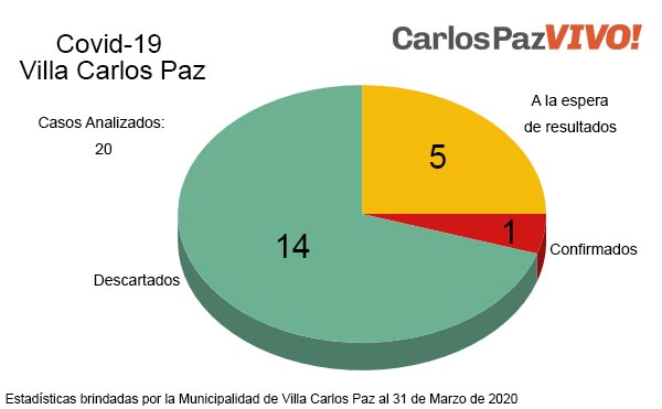 Según la información a la que accedió Carlos Paz Vivo de la Secretaría de Salud del municipio, de un total de 20 muestras enviadas a analizar se confirmó hasta el momento un solo caso de coronavirus en una mujer joven domiciliada en Carlos Paz. Se trata de un “caso importado” y está en evolución favorable, según fuentes médicas.