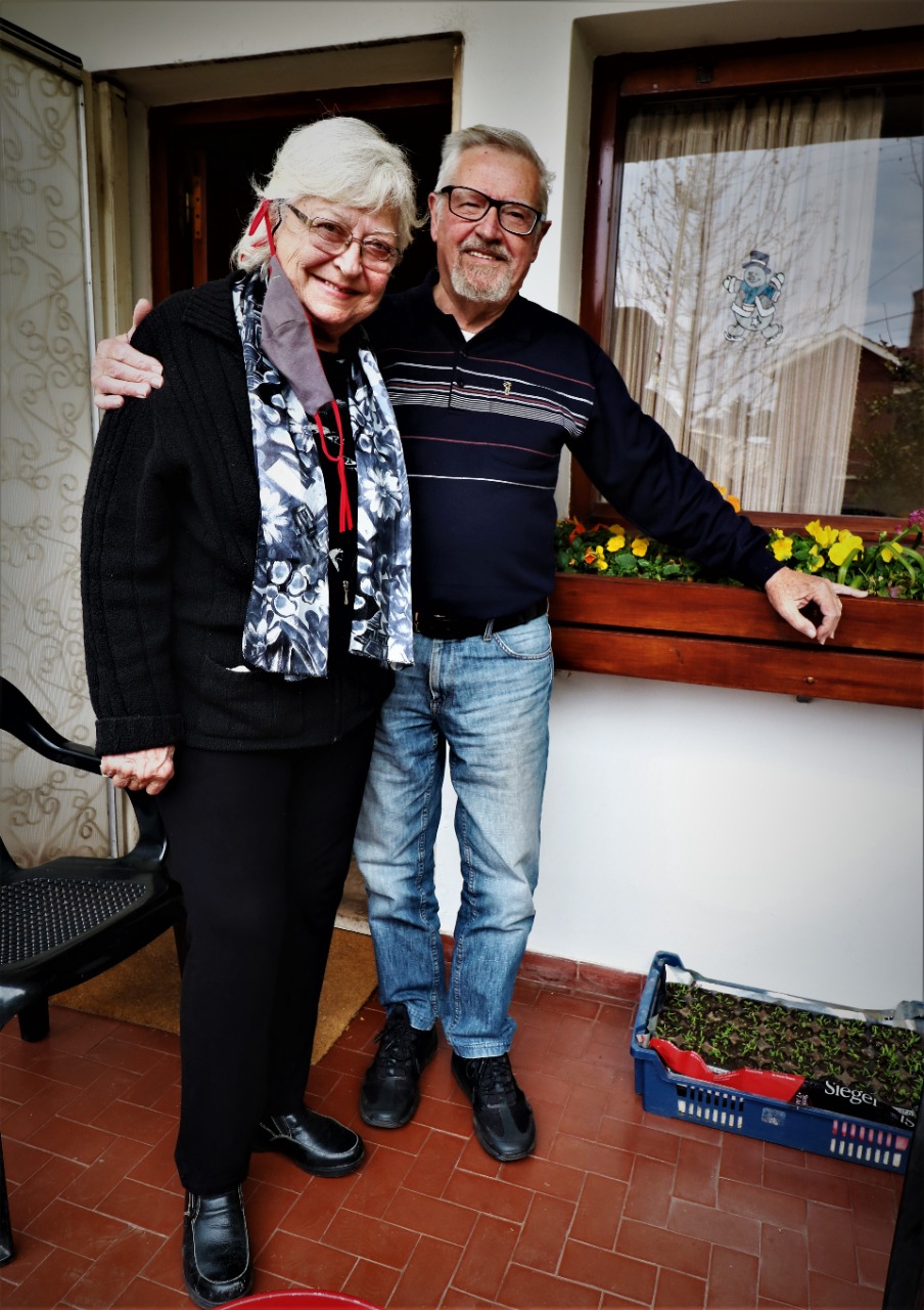 La Boda entre este Italiano y esta Santafecina (Casilda), es para un film de Fellini, que incluye, Civil en Rosario ya allí se conocieron, estudiaron y ‘afilaron’ (así se decía…les juro), Ceremonia religiosa acá, en La Quinta de los Jesuitas, viaje de Luna de Miel con El Cura que los casó, tomando vino de un odre de cuero y en un auto ‘flojito de papeles’.