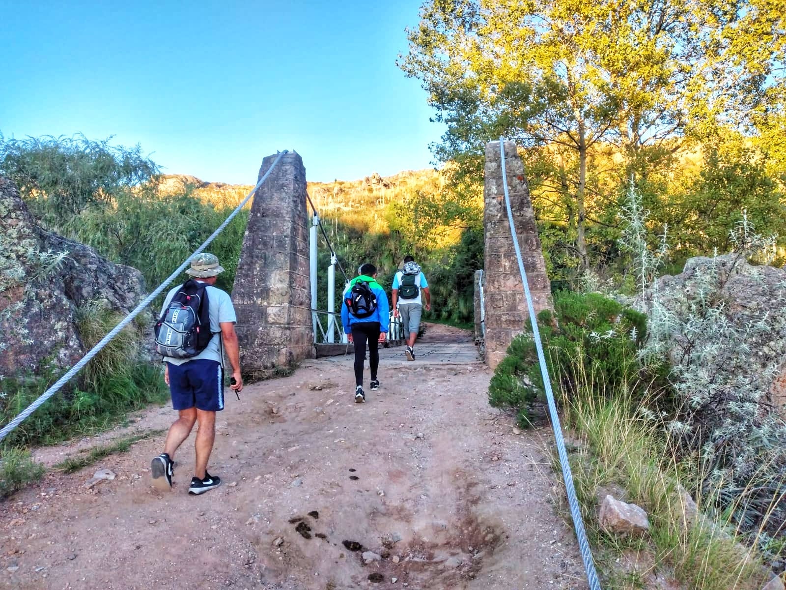 Este viernes pernoctaron en Copina con «una noche hermosa, un día fantástico». En la mañana de este sábado la caminata continuó por el camino viejo que une Copina con el Cóndor por la zona de los puentes colgantes «por aquí la gente viene muy bien» continúa contando Favio, pero destaca que los primeros días en las ciudades y las zonas más bajas el calor se hizo sentir «Los primeros días fueron agobiantes, pero ya pasando para la montaña cambia, en nuestra sierras cordobesas el aire es distinto» termina describiendo con cierto alivio el peregrino.