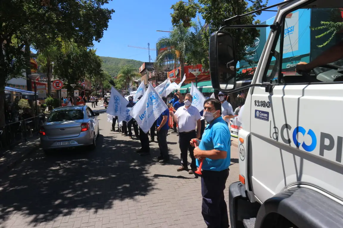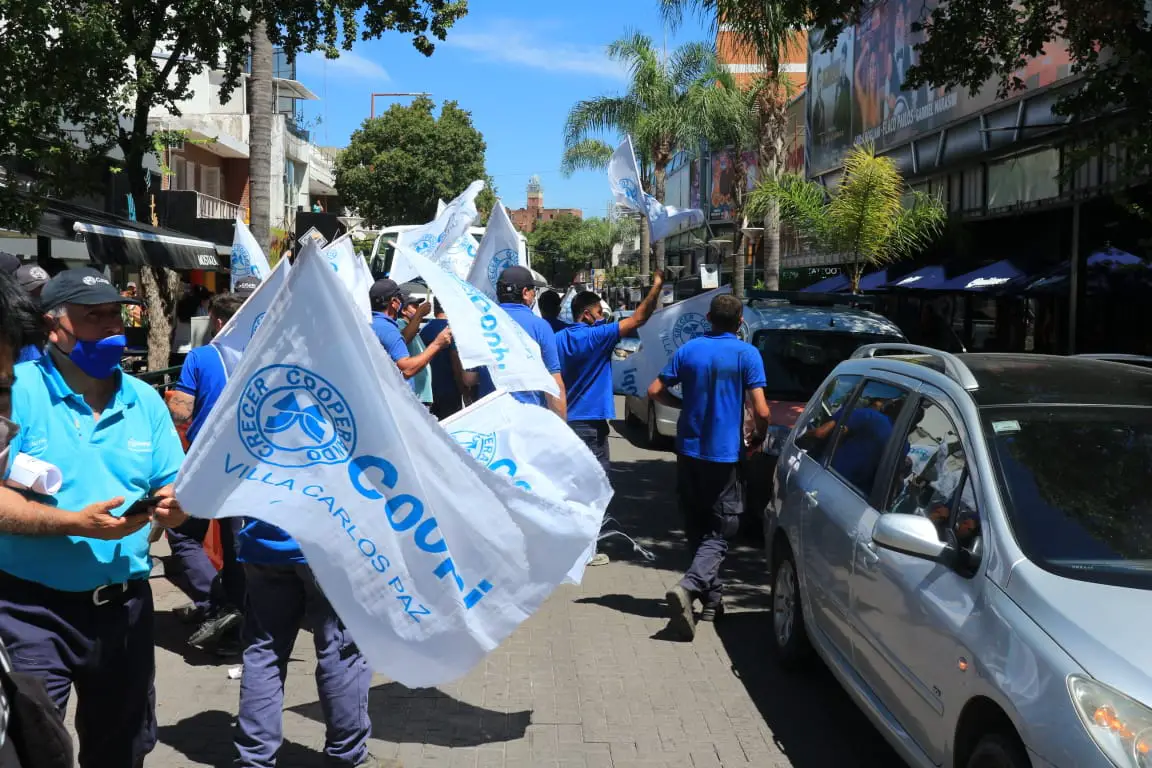 Un grupo de unos 40 empleados, aproximadamente, en primer lugar recorrieron distintos barrios de Villa Carlos Paz y repartieron panfletos a los vecinos.