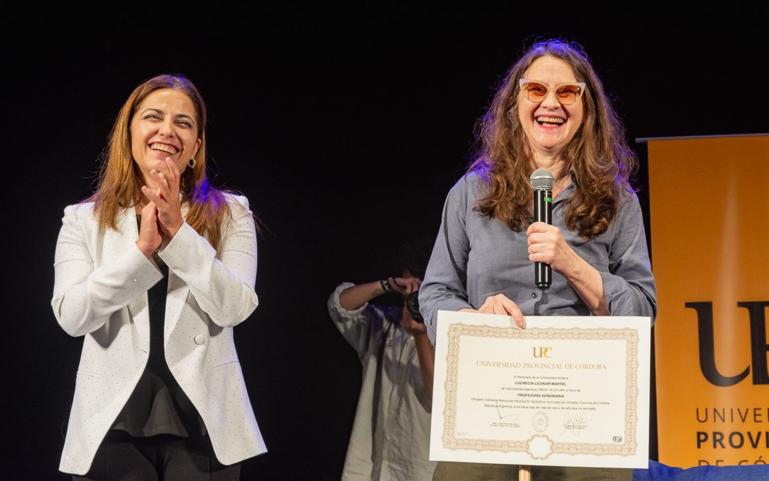 Tras una presentación que colmó la capacidad de la Sala Mayor del Teatro Ciudad de las Artes, la Universidad Provincial de Córdoba (UPC) otorgó el título de Profesora Honoraria a la directora y guionista Lucrecia Leonor Martel.
