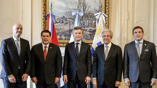 El Jefe de Gobierno argentino recibió a sus pares Tabaré Vázquez, de Uruguay, y Horacio Cartes, de Paraguay, quienes compartieron un almuerzo con el presidente de la FIFA, el suizo Gianni Infantino, con la propuesta de la organización del mundial como eje central.