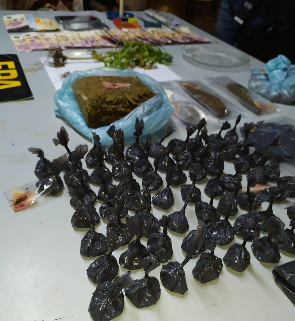En el domicilio, se logró la incautación de 1832 dosis de marihuana y 50 de cocaína, 8.140 pesos, un automóvil y diferentes elementos aparentemente relacionados a la venta ilegal de sustancias.
