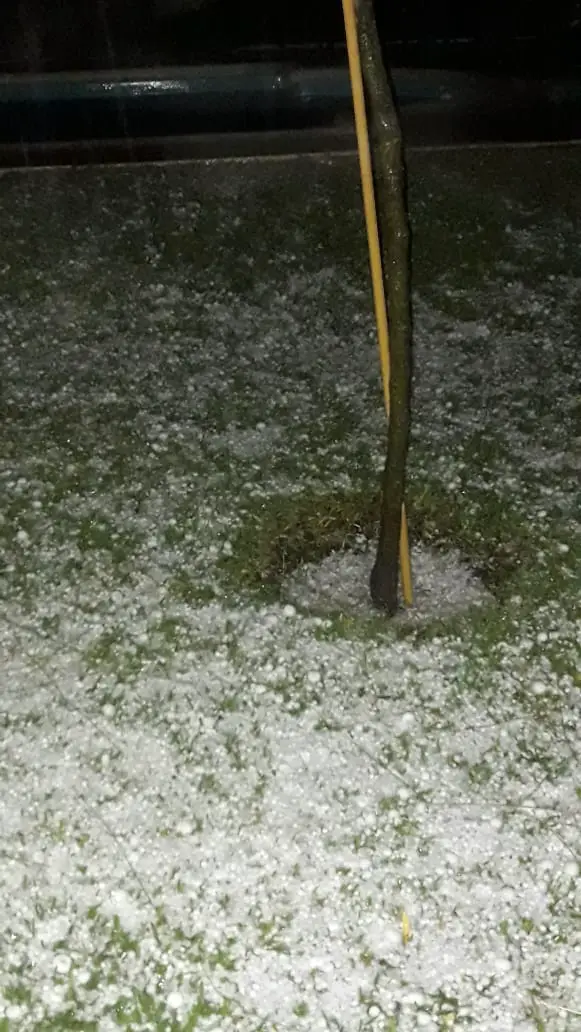 La tormenta llegó a la zona a las 2:30 de la madrugada con una fuerte caída de granizo sobre todo en los barrios del sur de la ciudad. Mientras que a las 6:00 AM se volvió a intensificar con una fuerte actividad eléctrica y precipitaciones más intensas.