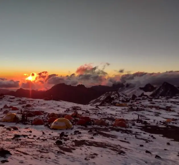 “No pude hacer cumbre este año pero estuve cerca y me sirvió para tomar tiempos entre algunos tramos, probar la nieve y el frío. Nos agarro tormenta de nieve dos días seguidos así que para la parte más alta, después de los 5000 metros, ya teníamos que usar grampones”.