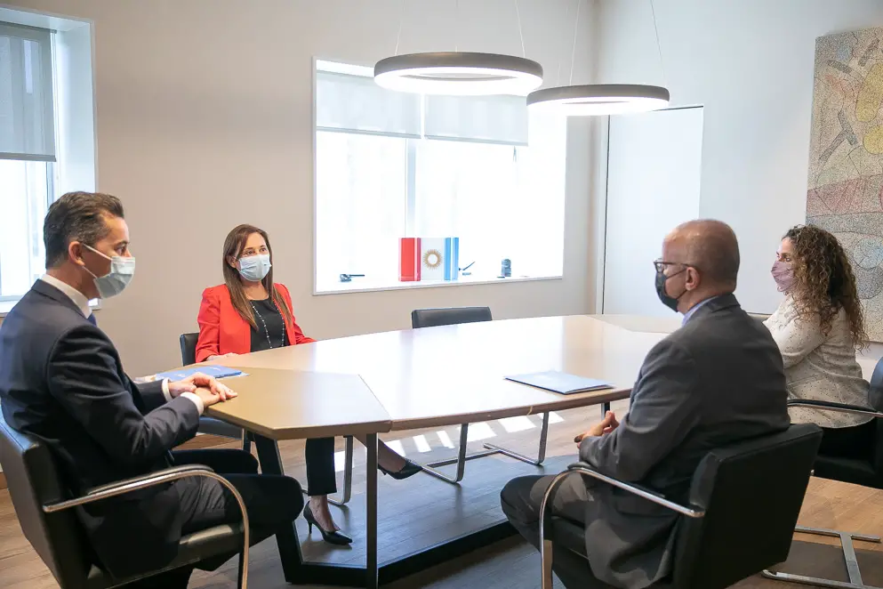 El encuentro fue encabezado por el vicegobernador Manuel Calvo, junto a la ministra de Coordinación de la provincia, Silvina Rivero, quienes recibieron al Coordinador Residente de Naciones Unidas en Argentina, Roberto Valent, junto a una comitiva también integrada por el Consejo Nacional de Coordinación de Políticas Sociales.
