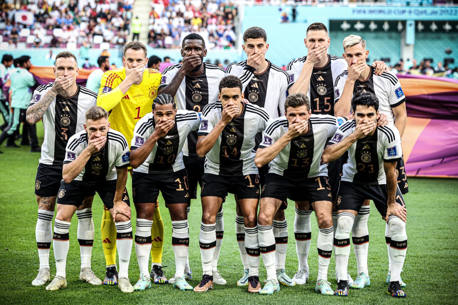 Además, todos los integrantes del equipo alemán protestaron en la previa del partido contra la medida de la FIFA, tapándose la boca, imagen que quedó registrada en la foto grupal.