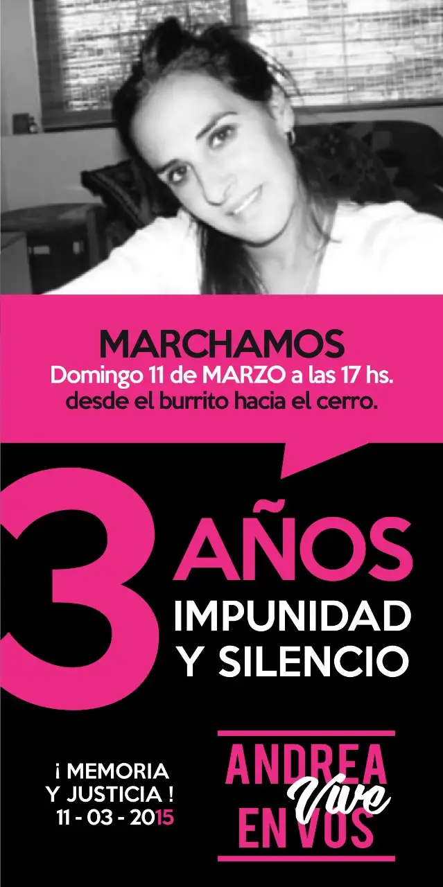 Familiares, amigos y vecinos de la ciudad marcharán el próximo domingo 11 de marzo al cumplirse el tercer aniversario del crimen de Andrea Castana en el Cerro de la Cruz. El cuerpo de Andrea, apareció dos días después, el 13 de marzo de 2015, enterrado debajo de la corteza de un árbol.