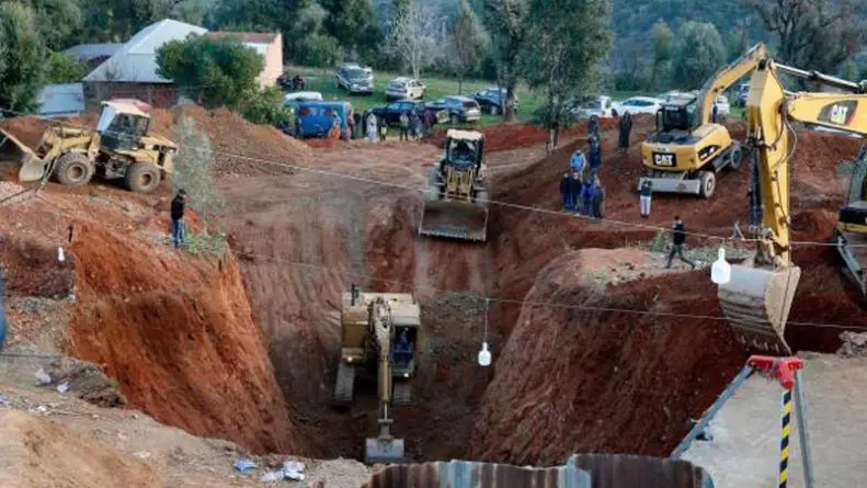 Las autoridades movilizaron cinco maquinarias pesadas para excavar en forma paralela al pozo para llegar a su profundidad y, desde ahí, acceder al rescate del pequeño Rayan.