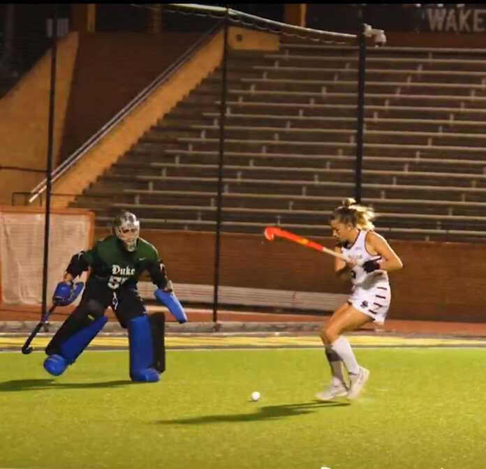 La joven jugadora de hockey, surgida de la cantera de Carlos Paz Rugby Club, fue la encargada del último disparo en el shootout y lo cambió por gol para que las Águilas se metan en la final del certamen de la Atlantic Coast Conference (ACC) tras cinco años de ausencia.