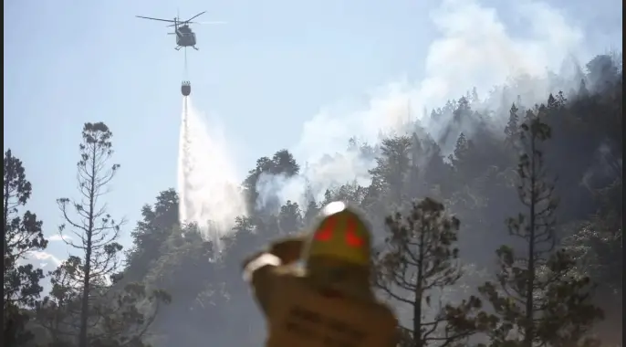En total, están trabajando 300 combatientes de línea, 2 aviones hidrantes y 3 helicópteros con helibalde.