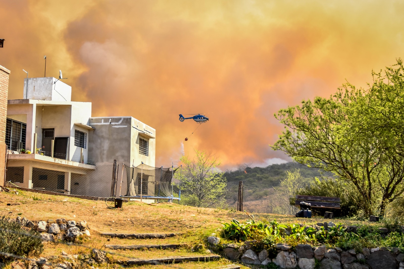 El viento y el intenso calor posibilitaron que el incendio que se inició pasado el mediodía en la zona entre Carlos Paz y Cabalango se propagara rápidamente hacia las localidades del sur de Punilla.