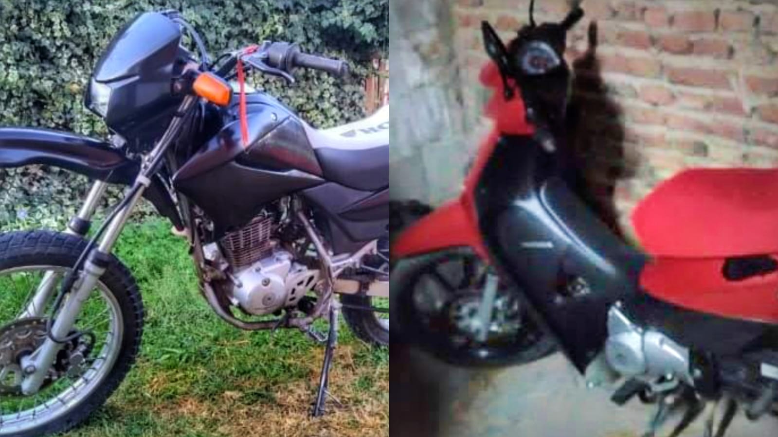 Las motos sustraídas son una Honda XR 125 de color negro y una Honda Biz 125 de color rojo. Ambas tenían las ruedas delanteras desinfladas y no estaban en condiciones de arrancar, lo que hace suponer que los ladrones las cargaron en algún vehículo para llevarlas.