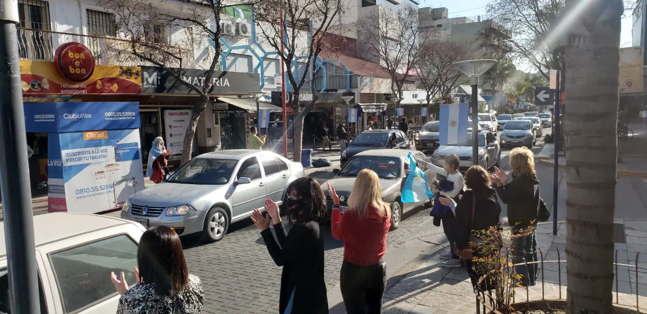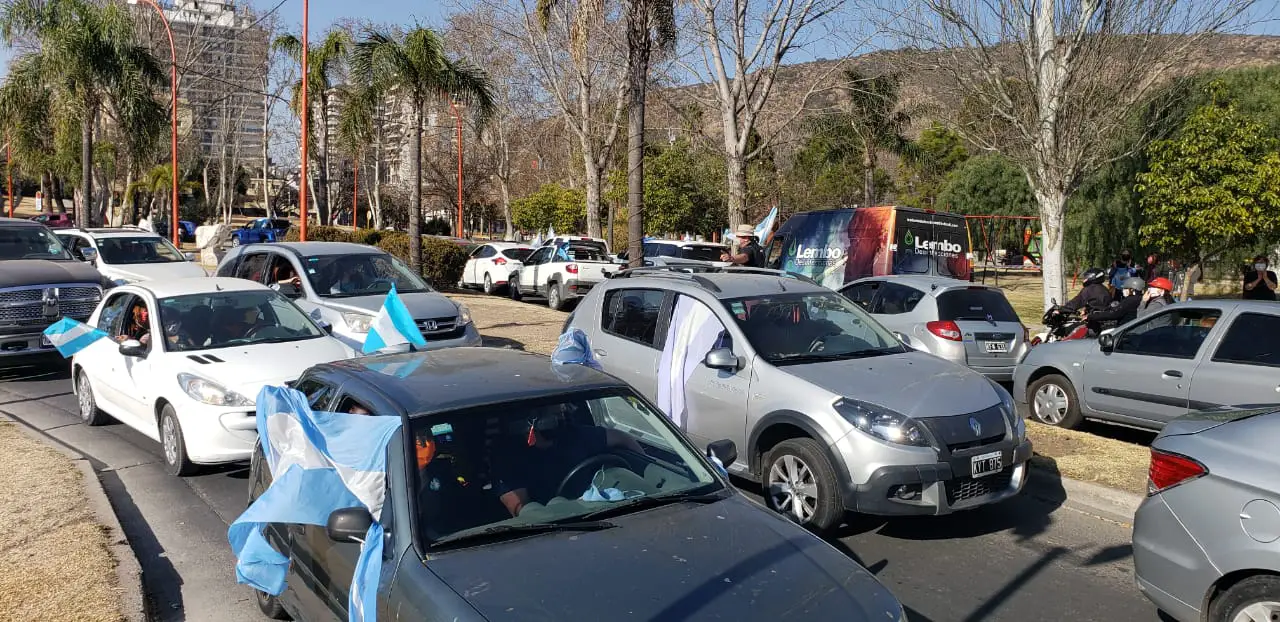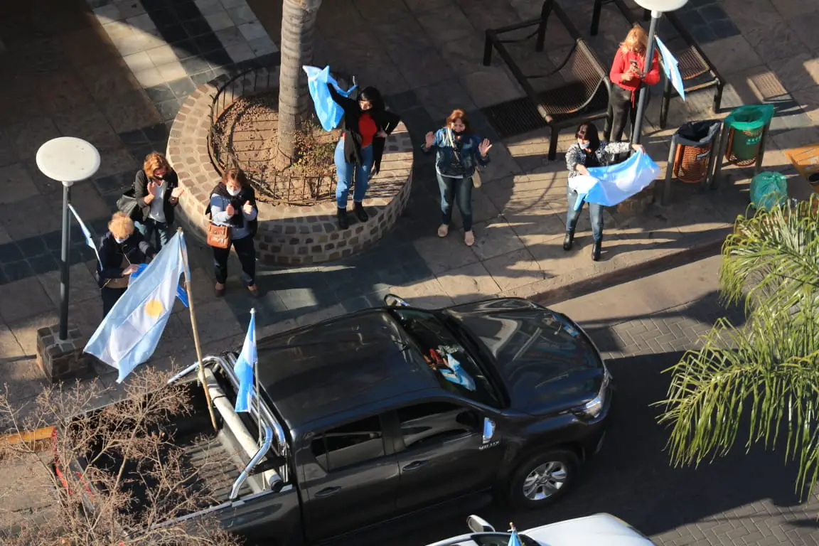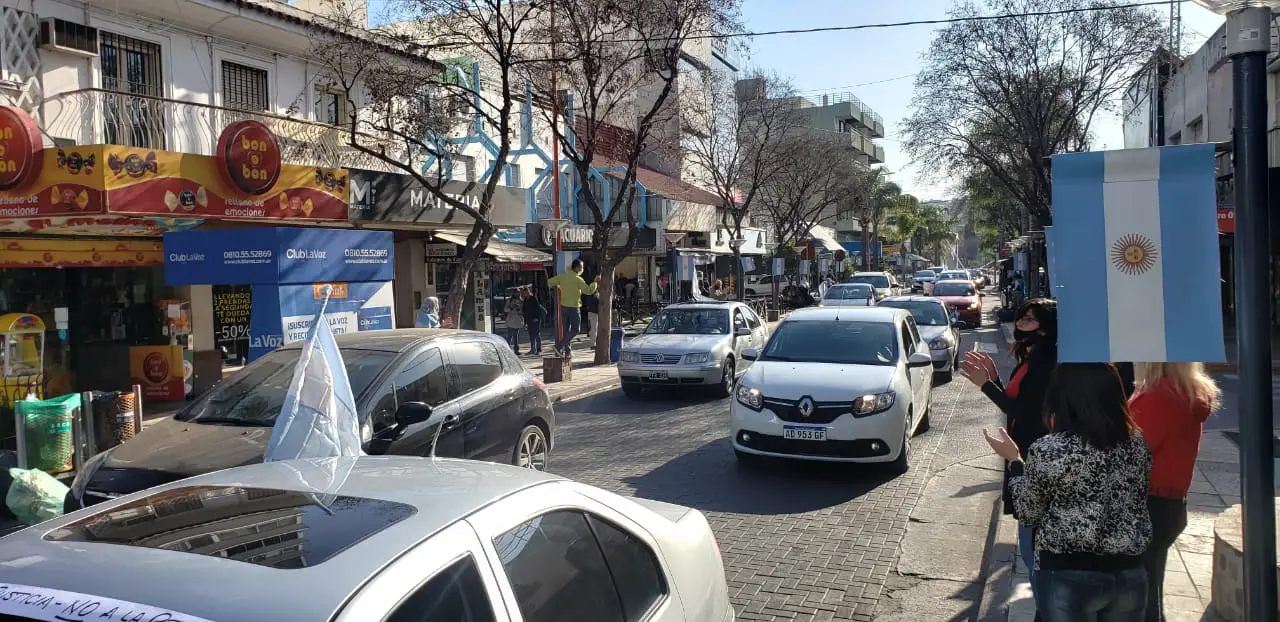 La nutrida caravana se caracteriza por los bocinazos incesantes y la masiva concurrencia. Desde los autos se muestran carteles en contra del Gobierno nacional con consignas como: “Quedate en casa, yo te robo el país. No a la reforma judicial”. La gran mayoría lleva sus banderas o insignias patrias.