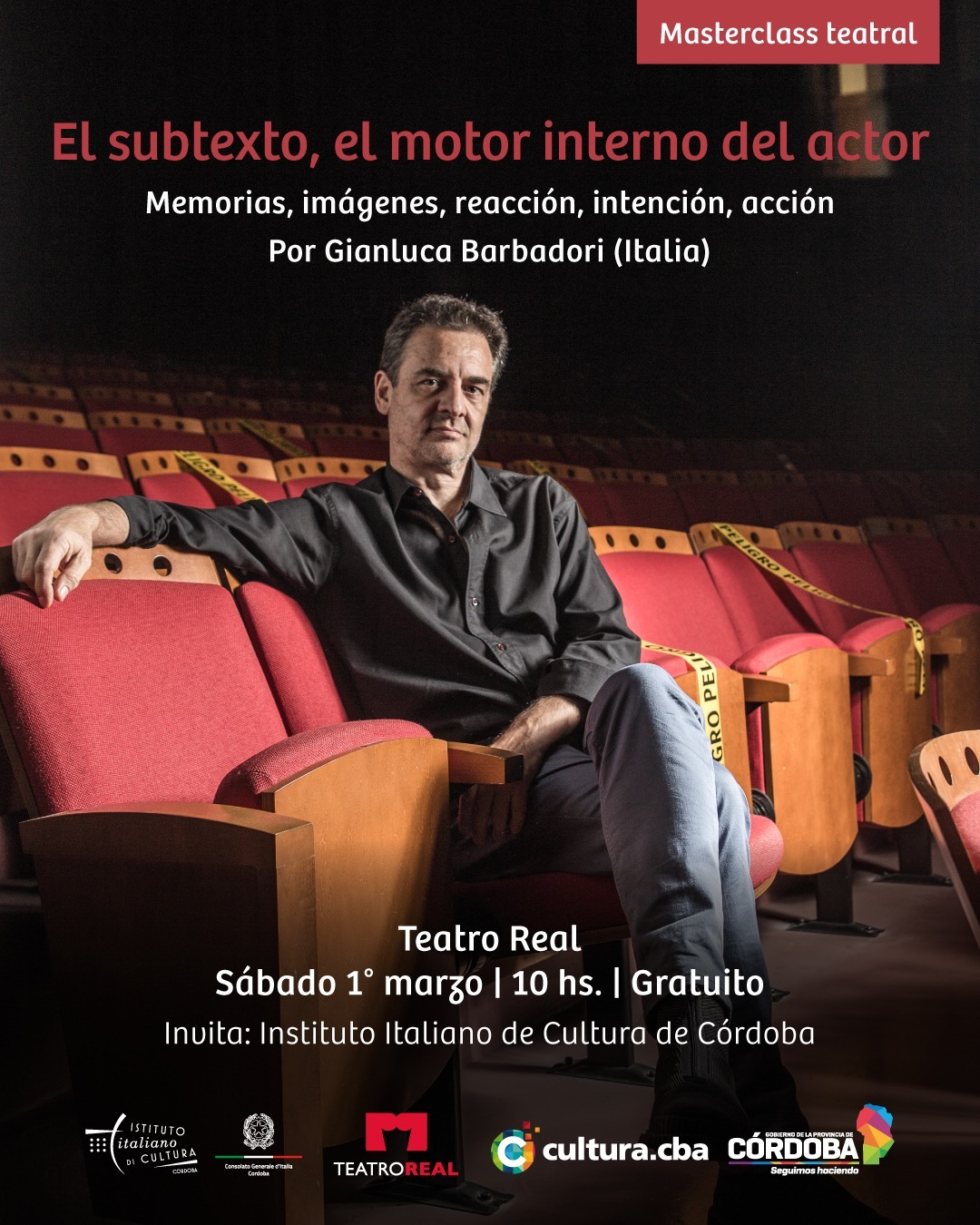 El próximo sábado 1 de marzo de 10 a 13 horas se realizará en el teatro Real (San Jerónimo 666) una masterclass a cargo del director teatral Gianluca Barbadori (Italia) bajo el título “El subtexto, el motor interno del actor”.