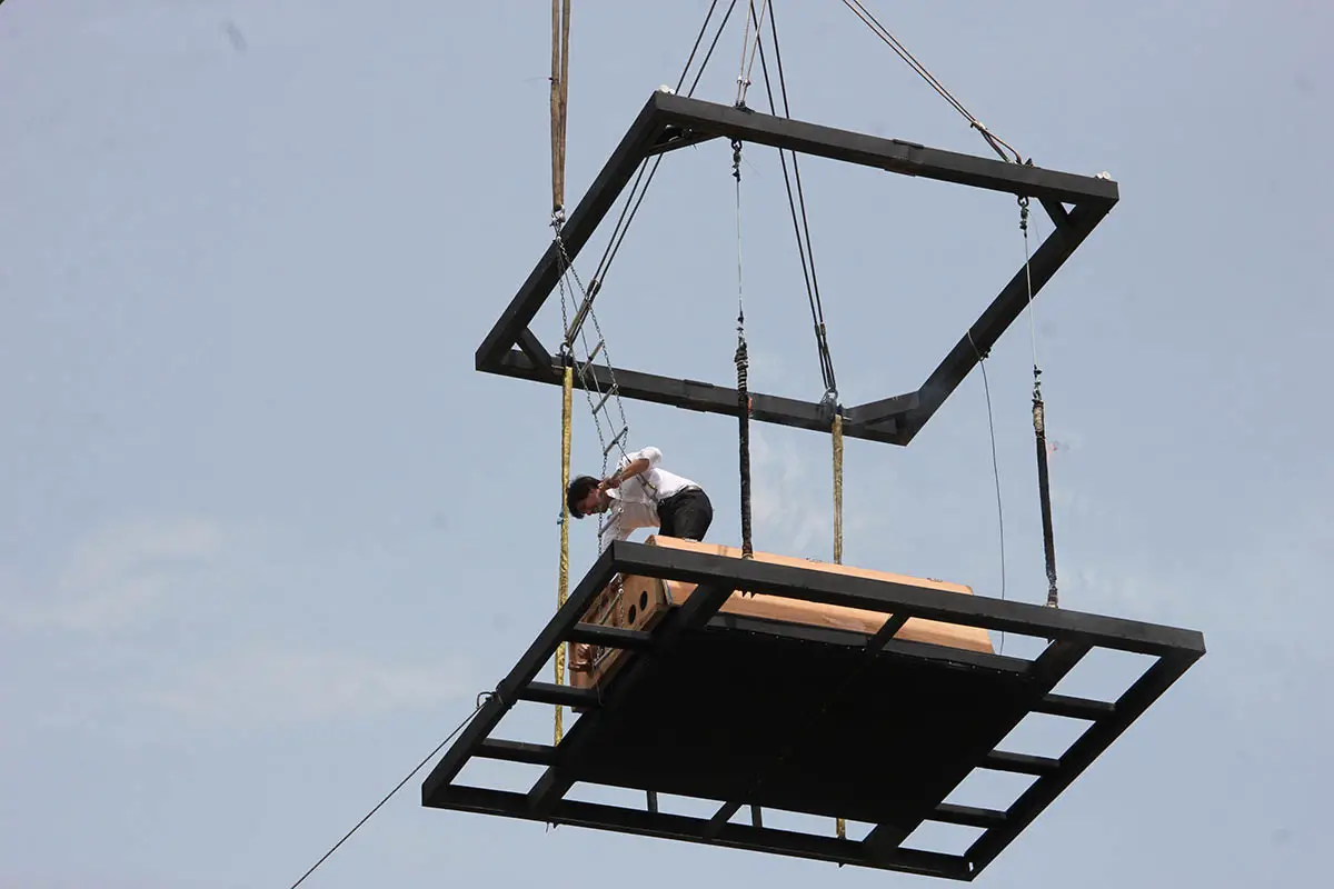 Un gran truco de magia que incluyó la utilización de dos mega grúas, un elevador neumático y el mencionado helicóptero, además de 10 personas que trabajaron para hacer el truco posible.
