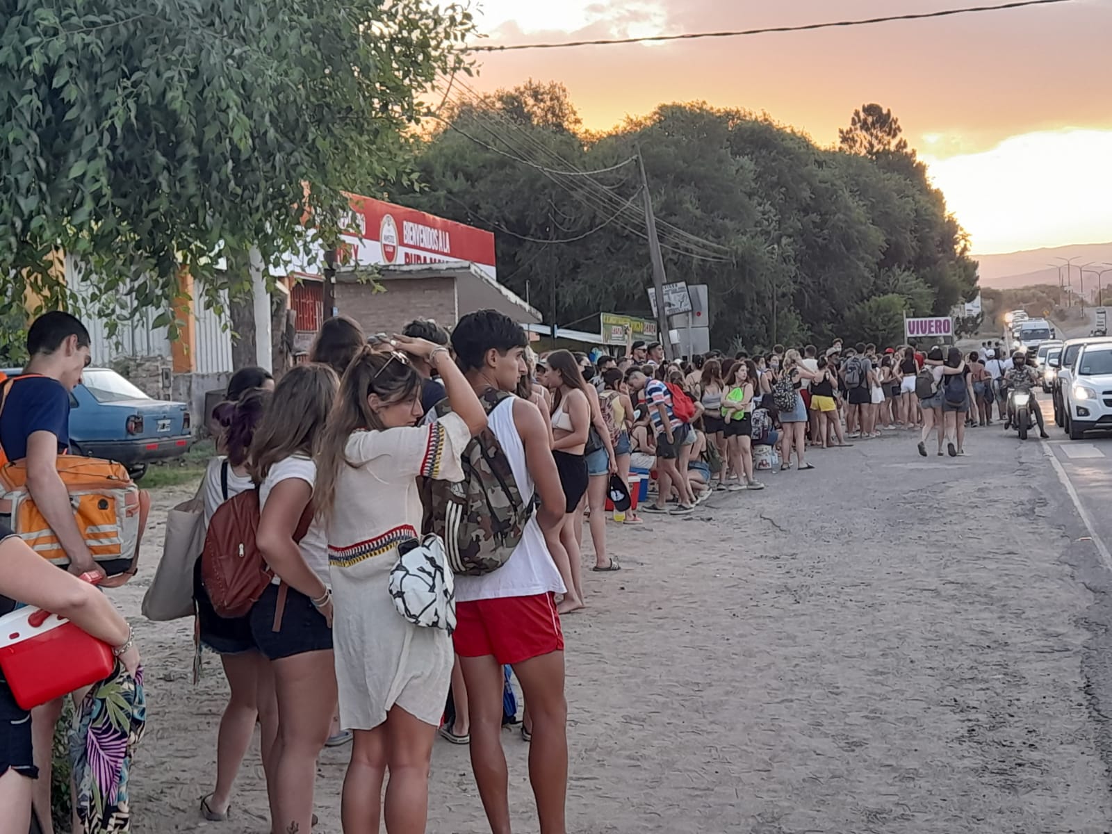 Lo complicado fue el regreso para los que llegaron en colectivo. En la foto se muestra la larga cola de chicos y chicas esperando su turno para volver a su destino.