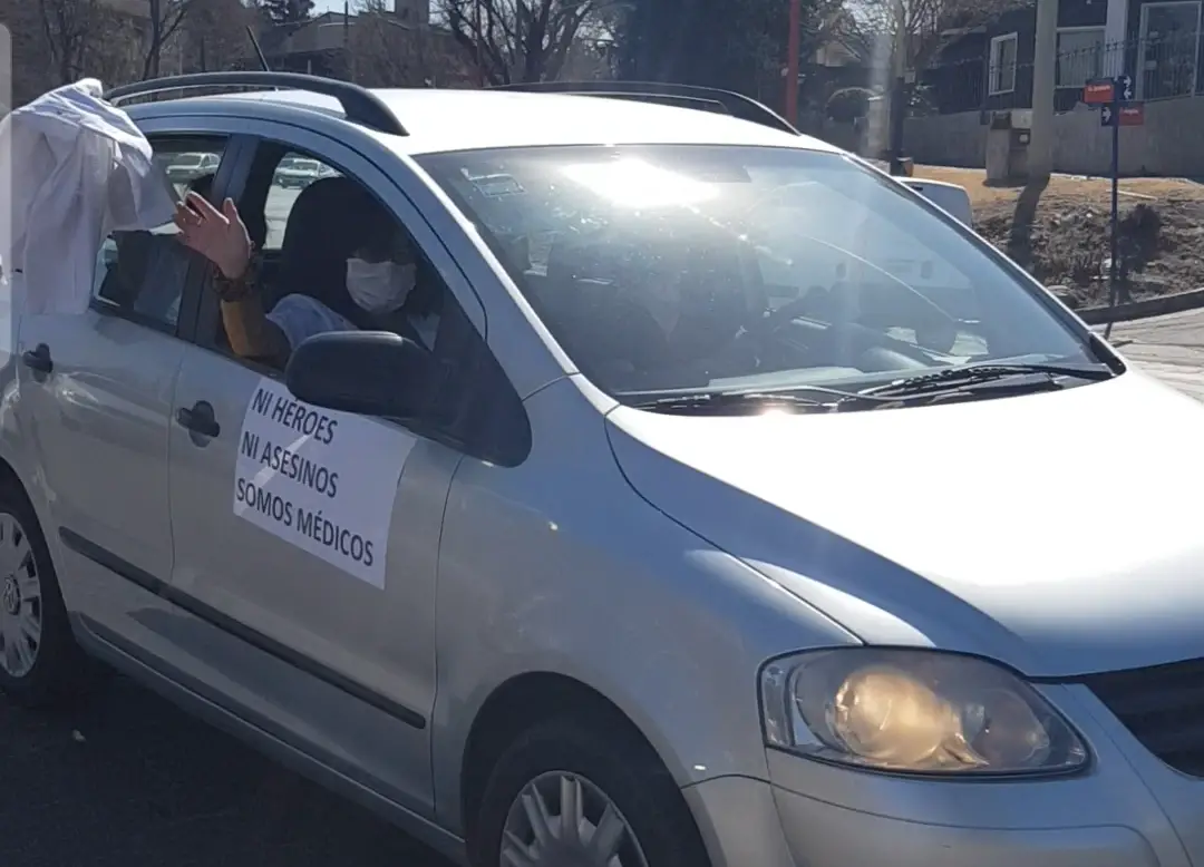 Con bocinazos, banderas y carteles, los profesionales de la salud visibilizaron la lucha que, desde hace un tiempo, vienen sosteniendo en relación a las condiciones laborales y salariales; más en este contexto en el que se ven atravesados por la pandemia del Coronavirus y son quienes están en la primera línea de batalla contra el COVID-19.