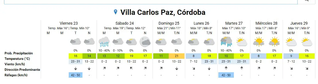 Aunque se habla de un frente frío que afectará a gran parte del país la próxima semana, en Villa Carlos Paz el clima acompañará durante el fin de semana patrio. Las condiciones serán ideales para disfrutar de las actividades al aire libre, incluyendo el Rally Provincial y el Gran Desfile del 25 de Mayo.