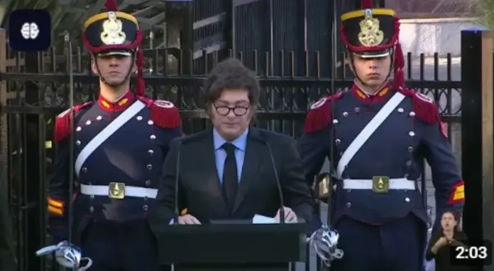 “Siempre dejamos claro que el voto más importante de todos es el que se hace con los pies. Anhelamos que los malvinenses decidan algún día votarnos con los pies a nosotros”, expresó Milei en su discurso, enfatizando su intención de que Argentina se convierta en una potencia para que los habitantes del archipiélago “quieran ser argentinos sin necesidad de disuadirlos”.