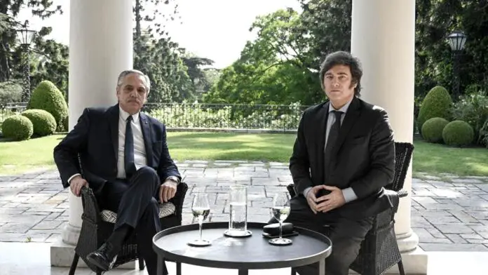 El presidente electo, Javier Milei, se reunió este martes con el jefe de Estado, Alberto Fernández, en la Quinta de Olivos.