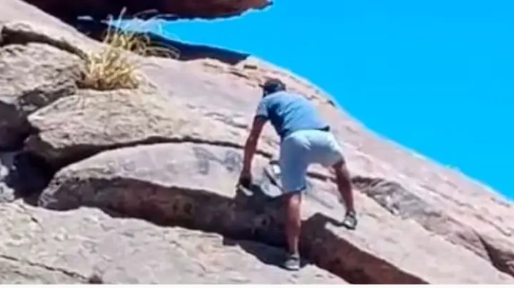 Este fin de semana, un turista de la ciudad de Rosario, provincia de Santa Fe, fue escrachado pintando una piedra cerca de la ciudad de Mina Clavero, Traslasiera.