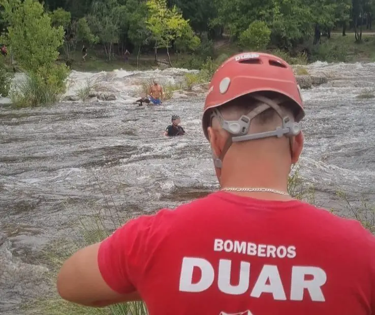 Personal del DUAR trabajó en el rescate de dos turistas que habían quedado aislados tras la crecida del río en ese sector de la ciudad .