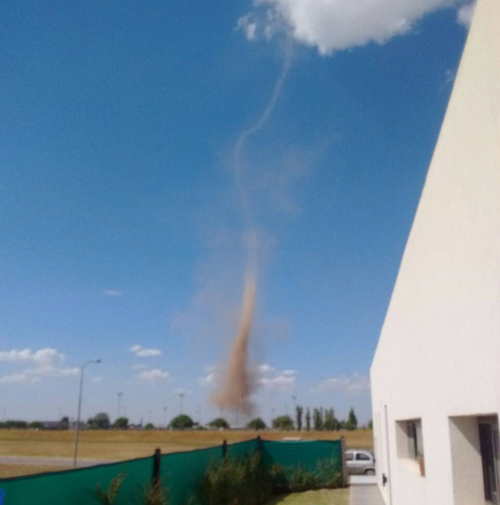 Mariano Álvarez, uno de los trabajadores, capturó en fotos este mini torbellino cuando miró “hacia el sur” y le pareció ver “una cola de tornado”.