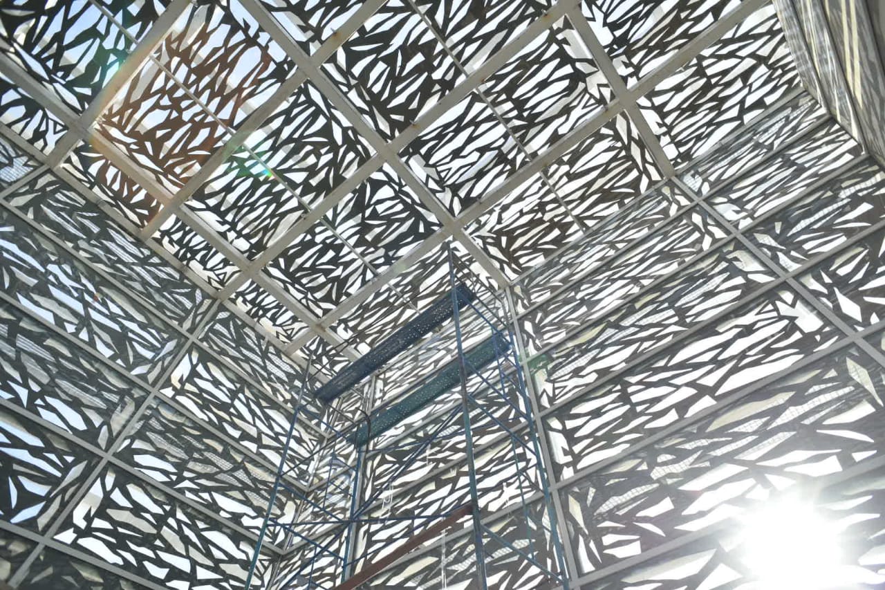 Simultáneamente, se realizan las últimas tareas bajo la carpa, que en los próximos días será quitada para finalizar la obra del techo vidriado, en las fuentes y el subsuelo.