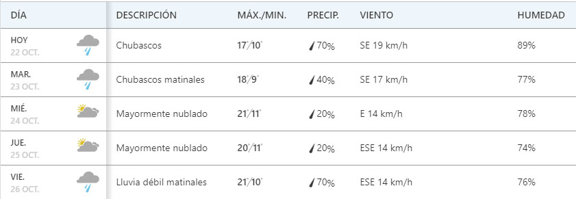 La temperatura en tanto, se mantendrá regular durante la semana, no superando nunca los 24 grados de máxima ni bajando más de 10 grados en la mínima diaria.