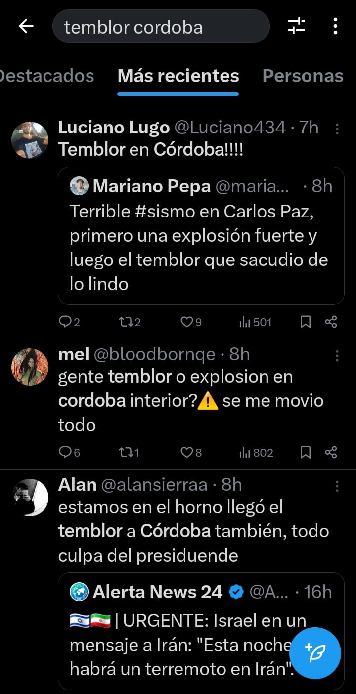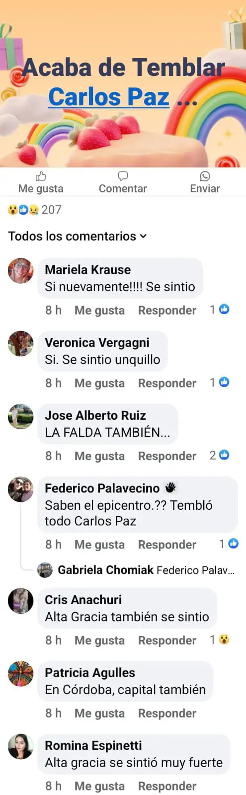 Frases como «Acaba de temblar Carlos Paz» o «Terrible sismo en Carlos Paz, primero una explosión fuerte, luego el temblor que sacudió de lo lindo» se pueden leer tanto en Facebook como en X (ex Twitter).
