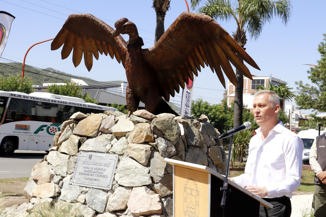 Para consolidar su condición de puerta de entrada al Parque Nacional Quebrada del Condorito, este lunes se inauguró un monumento que simboliza el laso de la ciudad con ese templo de la naturaleza, uno de los enclavez más relevantes del país y de Córdoba.