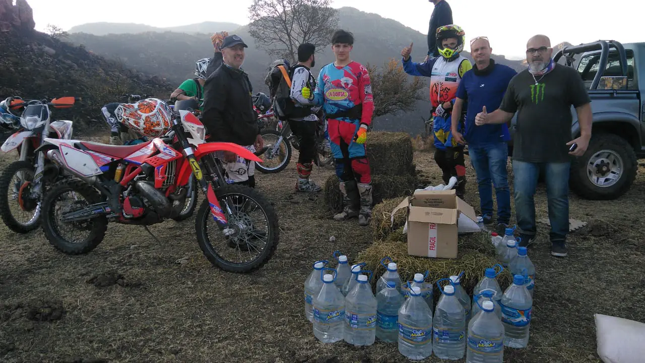 Después de los incendios, los moteros colaboraron con los animales que se quemaron en la montaña.